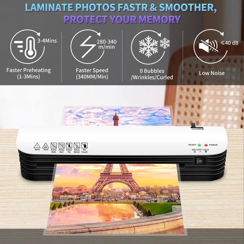 - 【Even Heating & Smooth Lamination】Compare to traditional glass tube heating, our reliable mica sheet technology to ensure even heat distribution for first-class lamination. The dual roller system precisely applies heat and pressure to ensure high-quality lamination without any unsightly bubbles, wrinkles or curling, effectively protecting your important documents.