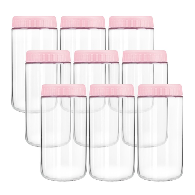 9 Pack Overnight Oats Containers with Lids, 24 oz Mason Jars with Airtight Lids, Wide Mouth Meal Prep Food Storage Glass Containers for Yogurt Salad Chia Pudding Oatmeal Snack Breakfast-Pink