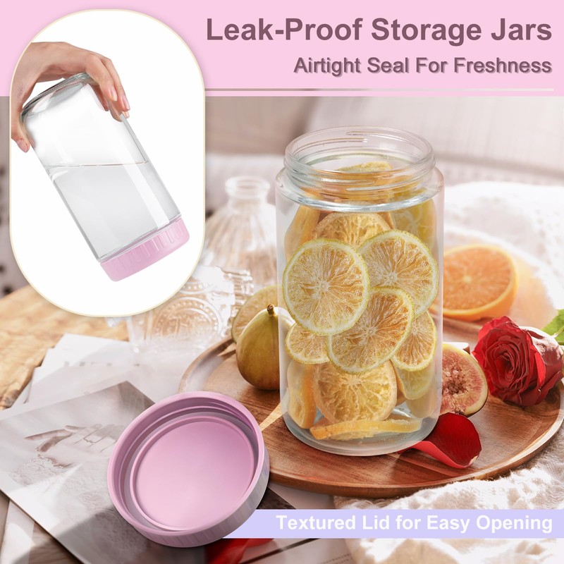 These overnight oats jars with lids are your perfect companion for fresh, organized, and stylish food storage. Crafted from premium food-grade glass, each glass oatmeal jar with lid is BPA-free and lead-free, offering excellent clarity and durability for everyday use. Whether you're prepping meals or packing breakfast on the go, these meal prep jars help maintain the freshness and flavor of your ingredients. The wide mouth design of these chia pudding jars with lids makes filling, scooping, and cleaning a breeze—no more struggling with narrow openings or awkward corners. A silicone O-ring inside the lid provides an airtight, leak-proof seal, keeping your overnight oats, yogurt, or salads fresh for longer periods. Thanks to their stackable lids, these glass snack containers save space in your fridge or pantry while staying easy to open with their textured grip. From salad jars with lids meal prep to stylish jars with lids for serving parfaits, snacks, or homemade jams, this 9-pack set brings both function and charm to your kitchen. Whether you're assembling a quick breakfast, portioning out healthy snacks, or storing your favorite chia pudding, every jar for overnight oats in this set delivers on versatility, freshness, and style.
