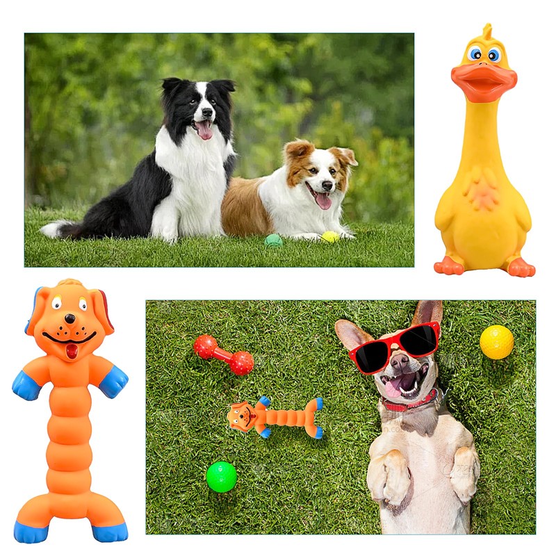 Latex squeaky dog toys are made of rubber with a smooth surface, coating is pleasant to the touch and soft, easy to clean, making maintenance convenient and time saving, simply wipe with a damp cloth and rinse with water to make them as clean as new.