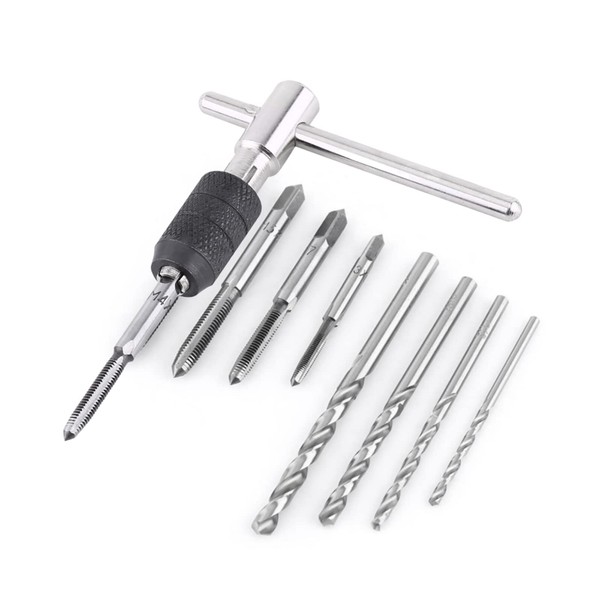 - Type--- This tapping wrench set is a universal tool for manual tapping operations. It includes 1 T-shaped tap wrench, 4 taps and 4 twist drill bits