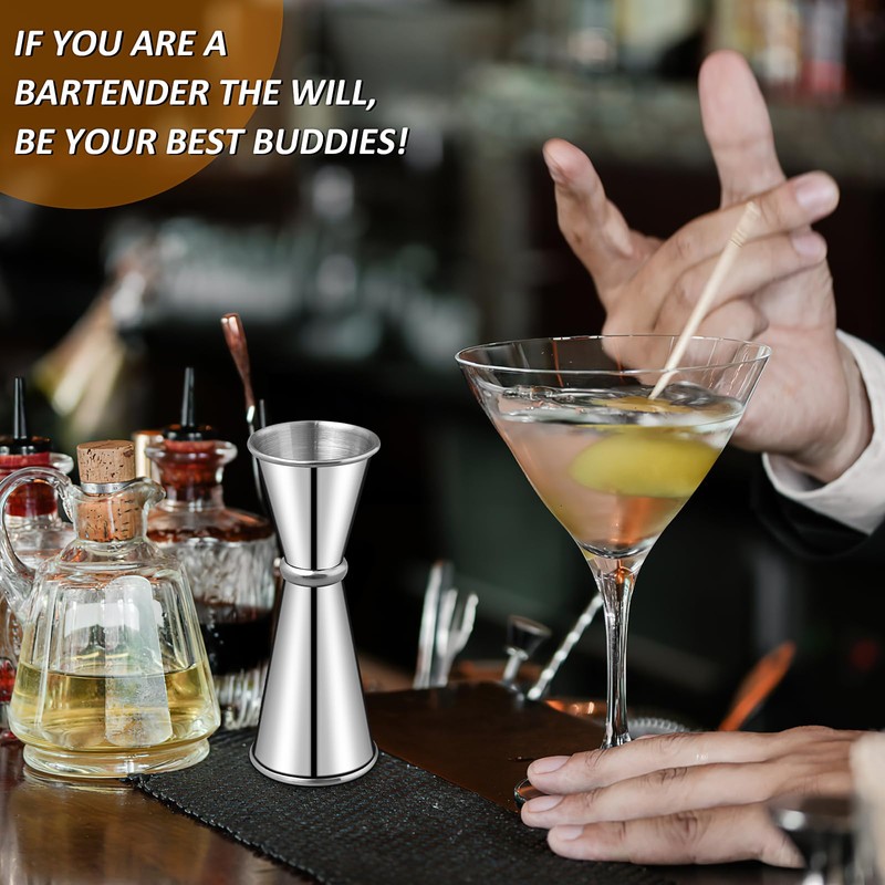 - Easy to Use: the jigger for bartending has a slender shape and can be stabilized between the fingers, making it easy to operate with one hand, convenient for you to make wines and pour them to cups or glasses.