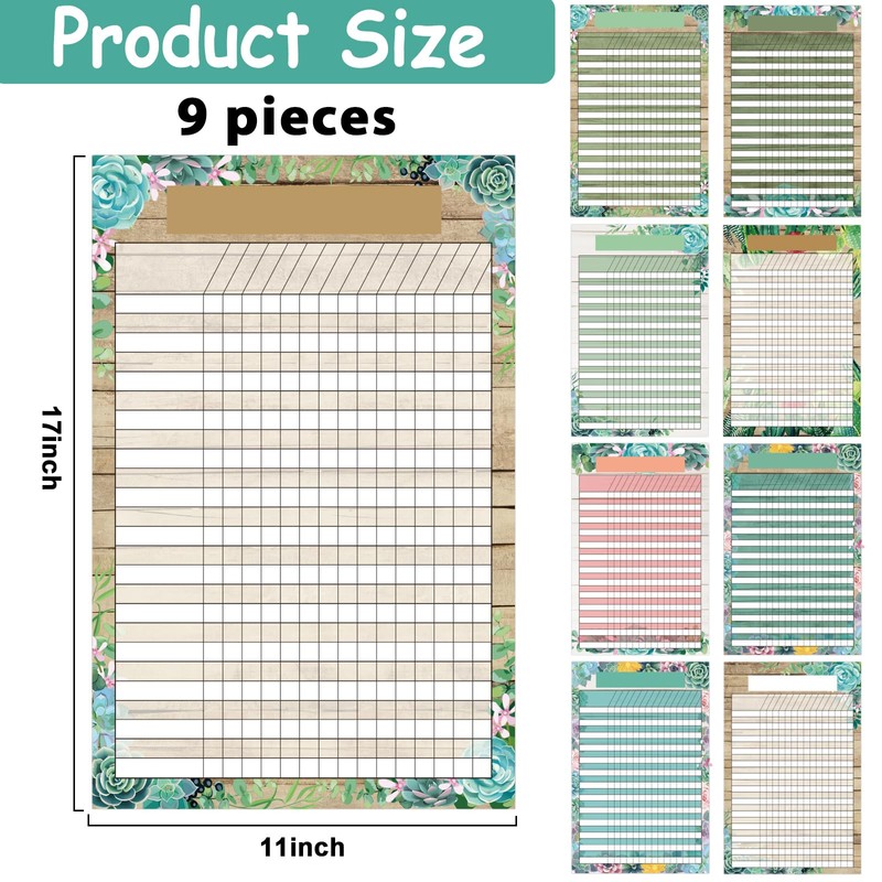 • Package include: You will receive 9 pieces Data Charts in a set of our succulents classroom charts, and each is in a different style. A sheet of data chart measures approximately 17*11 inches/43.18*27.94 cm, with 25 rows and 15 columns,large enough and rich in content, very convenient to use.