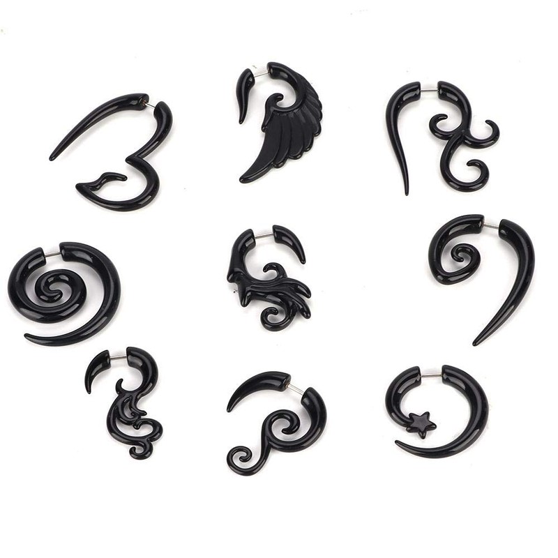 9 Pcs/Set Aretes Acrílico Y Estilo Punk, Joyería Piercing De Oreja
