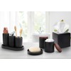 9-Piece Bathroom Accessories Set with Elegant Wood Lids – Bathroom Soap Dispenser Tumbler Toothbrush Holder 2 Storage Jars Tumbler Tissue Box Cover Tray Soap Dish (Black)