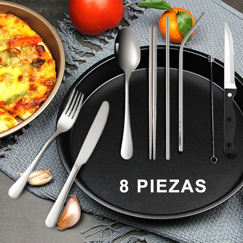 9 Piezas Cubiertos Portatiles, Utensilios Reutilizables de Viaje, Perfectos para Acampar, Escuela y Oficina, Aptos para Lavavajilla