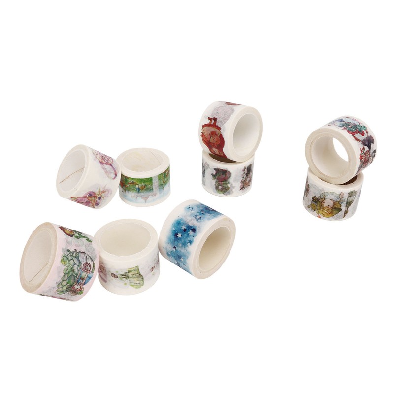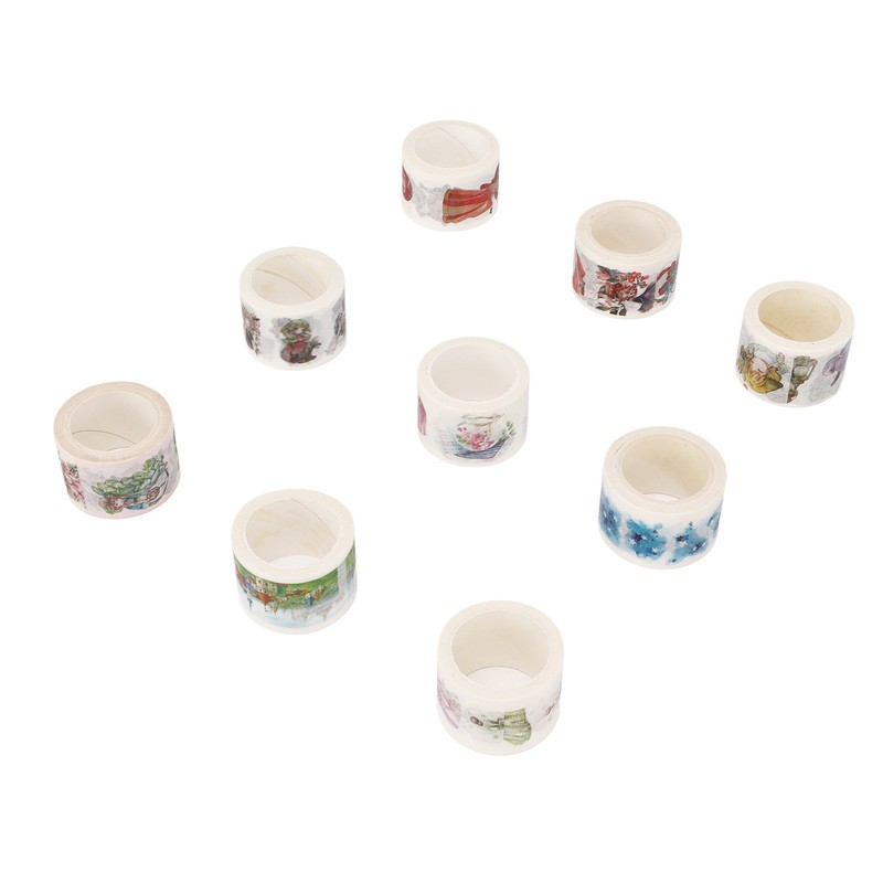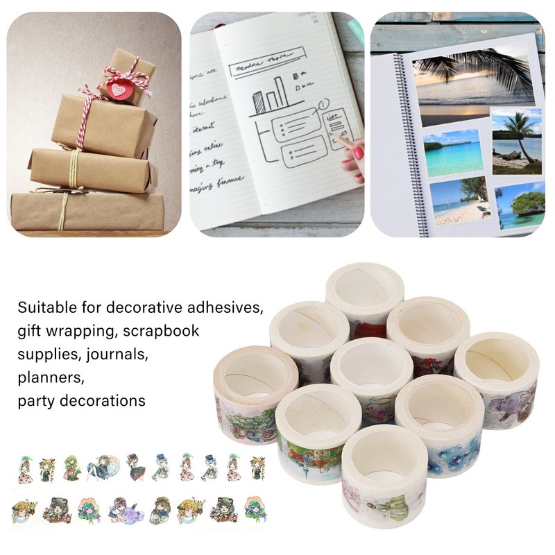 9 Rolls Japanese Paper Tape Set Hand Drawn Wide Tape Craft Decorative Tape for DIY Handbook Album Diary