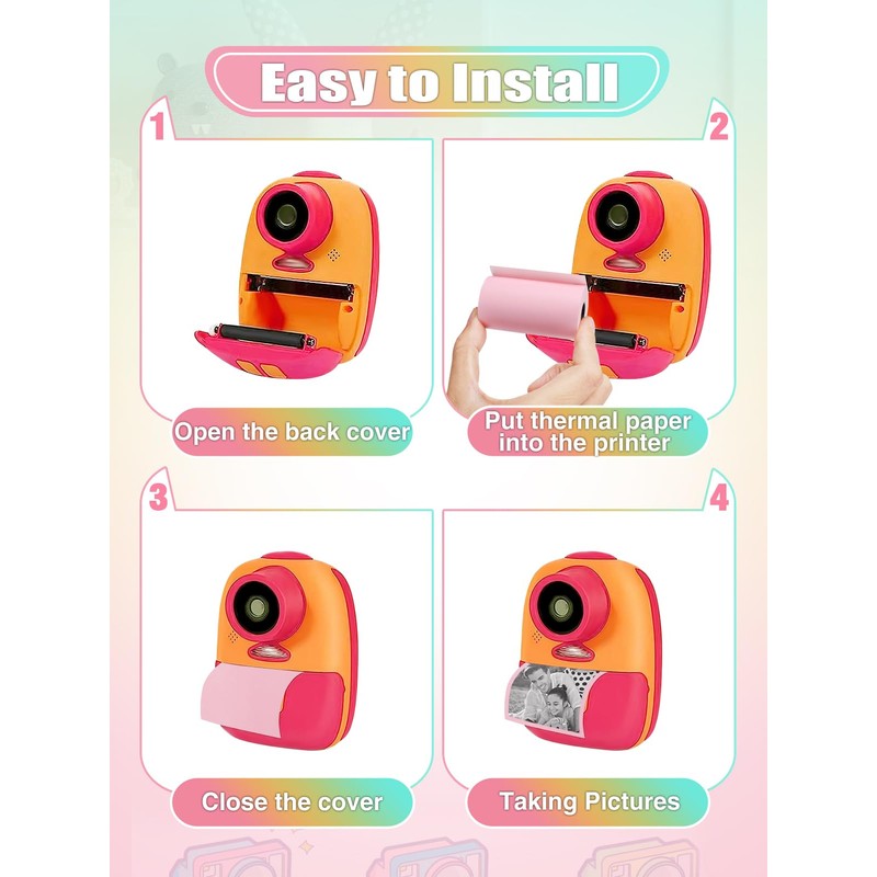 - Easy to Use: The camera thermal paper is suitable for kids' instant cameras of various styles. It is very easy to install, children only need to pay attention to the direction of installing the thermal paper and do not expose the thermal paper out of the camera cover.