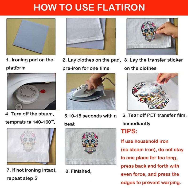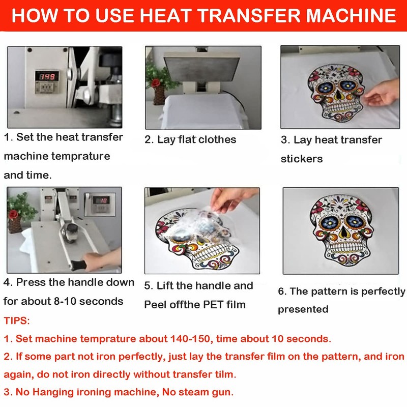 - Simple to Use: Put the Christmas iron on transfers on the surface where you want to apply, iron the vinyl pattern on the clothes with a household iron (Do Not use Steam Iron) or heat transfer machine, and then tear off the transparent protective film and complete your DIY work.