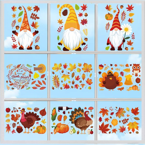 - 🍁Package Includes: you will get 9 sheets of thanksgiving fall window clings in different styles. You can decorate these fall thanksgiving window clings just follow your own ideas, enjoying the joyful and funny DIY decorating time with your friends and family.
