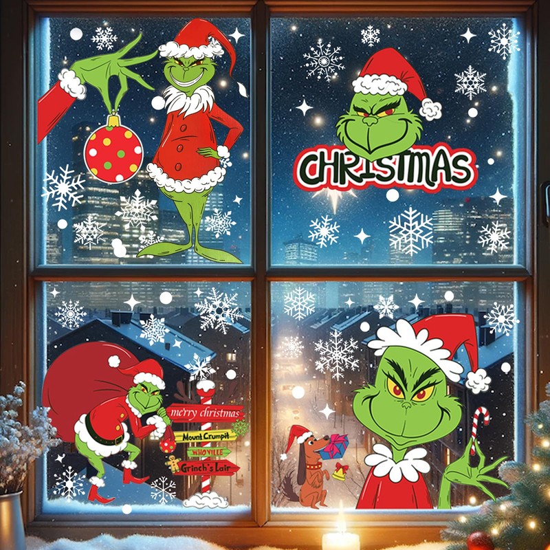 - Rich quantity selection: you will receive 9 pieces Grin-ch Christmas window stickers, cartoon window decoration is attractive patterns can be clearly seen from inside and outside, more attractive, sufficient quantities and rich styles, enough to meet your Christmas decoration needs