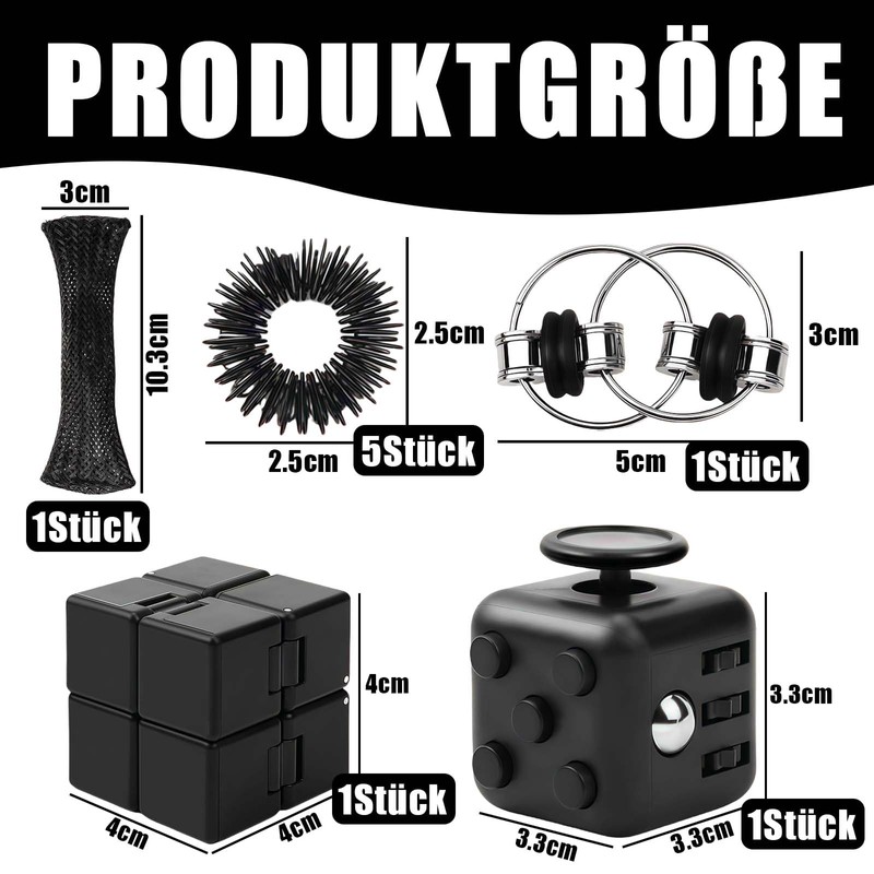 9 Stück Fidget Toys Set, Anti Stress Spielzeug Stress Abbauen, Stress Spielzeug Tötungs Zeit Stressabbau, für Nervöse Menschen Zum Stressabbau (Schwarz)