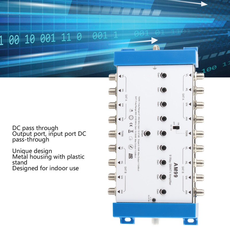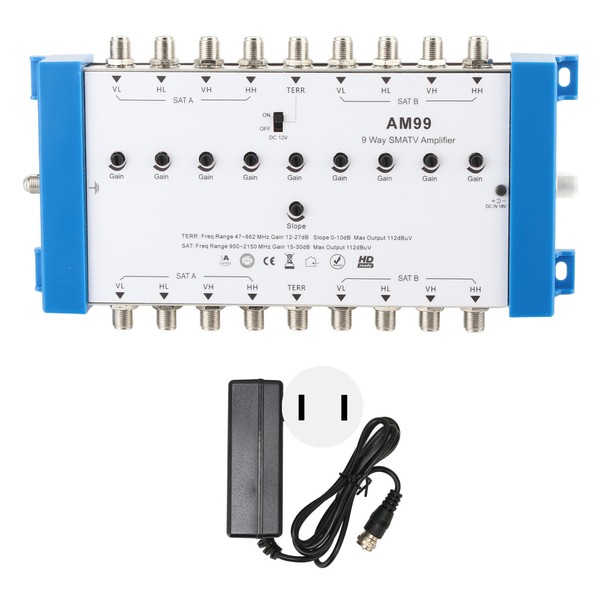 9 Way SMATV Amplifier Professional Plug and Play Satellite TV Splitter for Indoor Use 100‑240V US Plug