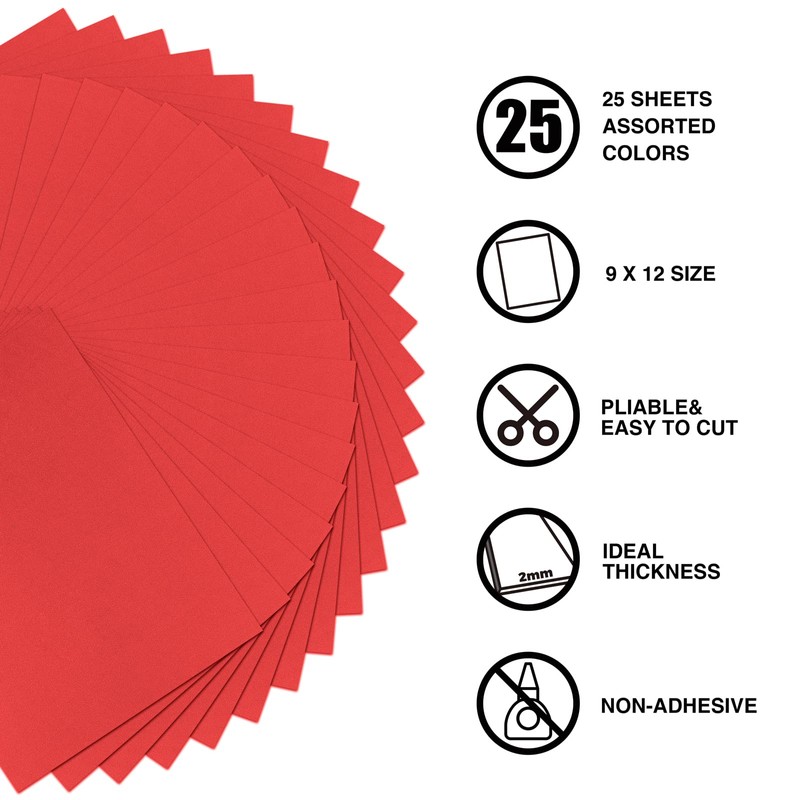 9 x 12 Inch Red Foam Sheets Crafts, 2mm Thick. 25 Pack Premium Red Foam Papers Set, for Crafting,Cosplay,DIY Project,Classroom, Scrapbooking, 3D Card Making