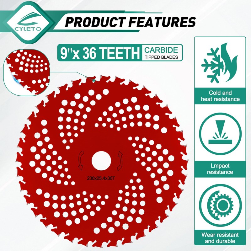 - This 10" x 80T Carbide Tip Brush Cutter Trimmer Blades & 9" x 36 Teeth Carbide Tipped Blades & 9"x 36 Teeth Carbide Tipped Blades has a 1-inch(25.4mm) hole in the center, which is suitable for most straight shaft gas trimmer with 1 inch(25.4mm) gear case.