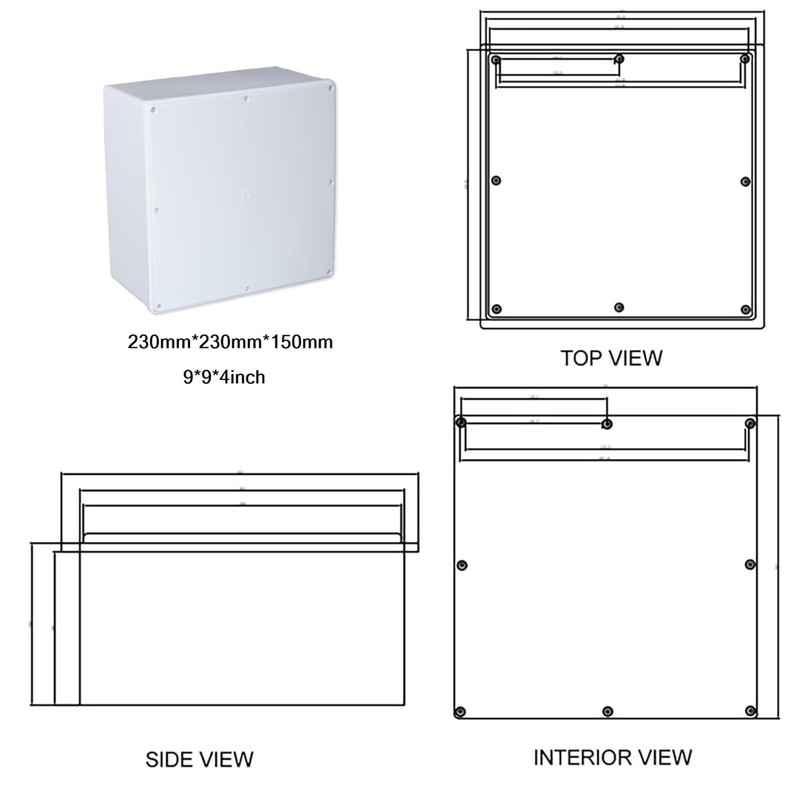 9" x 9" x 4" ABS Plastic Waterproof & Dustproof IP65 Junction Box with Gasket – Outdoor Electrical Enclosure for DIY Projects