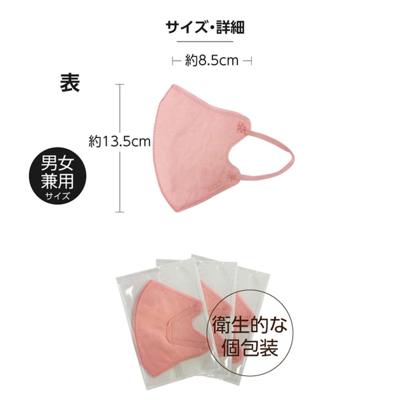 - 【特徴(耳ゴム)】不織布マスクなのに、おしゃれな立体型!機能にもこだわり、99%カット不織布フィルターを使用。耳ゴムにもこだわり、長時間の着用でもストレスの少ないふわふわ平ゴムを使用。カラーマスクでは耳ゴムは白いものも多い中、耳ゴムまでこだわりの染色を行っています。