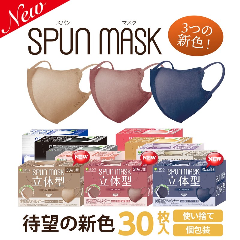 [医食同源ドットコム] 【90枚 30枚入x3箱】 iSDG 立体型スパンレース不織布カラーマスク SPUN MASK 個包装 ネイビー 30枚入×3箱