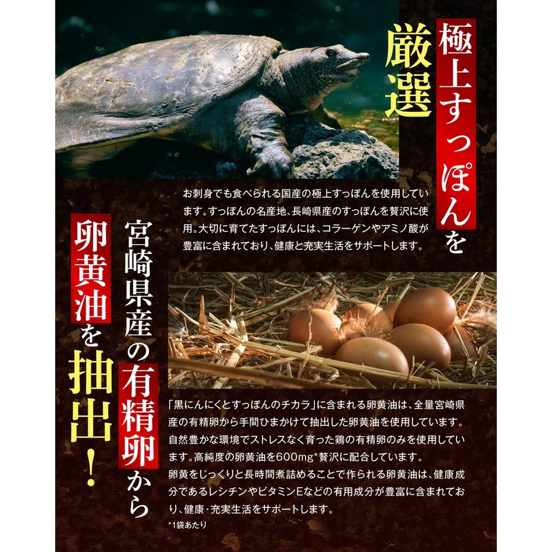 - 🧄【海の3大エネルギー成分も厳選配合】黒にんにく卵黄に加え、海の3大エネルギーである長崎県産すっぽん、瀬戸内海産牡蠣エキス、島根県産シジミエキスを凝縮配合。更なる活力を後押しします。