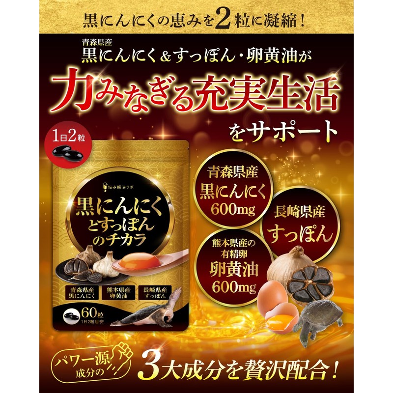 【こだわりの国産原料贅沢配合】黒ニンニクとすっぽんのチカラ 90日分 青森県産黒にんにく 長崎県産すっぽん 熊本県産卵黄油 サプリ 瀬戸内海産牡蠣エキス 島根県産シジミエキス 和歌山県産完熟梅 亜麻仁油 国内製造 悩み解決ラボ