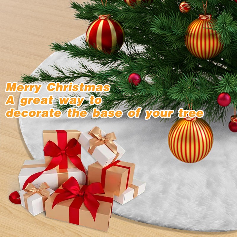 90 cm White Chrisimas Tree Skirt Faux Fur Plush Skirt Xmas Ornaments Tree Decoration for Merry Christmas Party