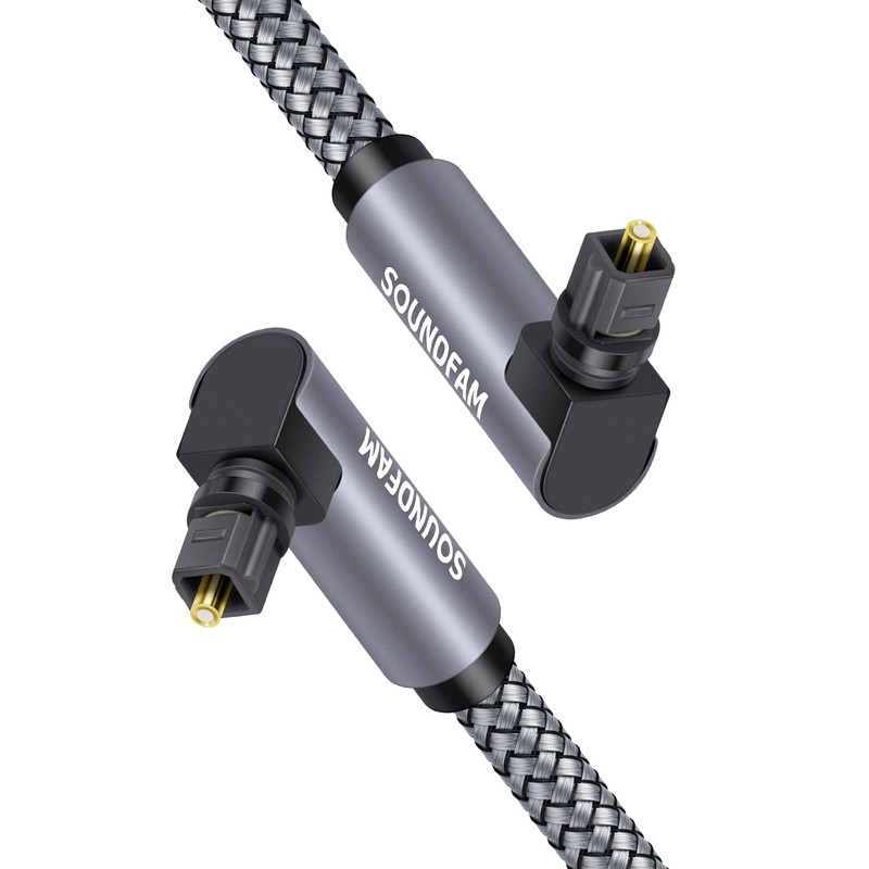 - 【Ultra Durability】-Unlike conventional PVC jackets, the right angle optical cable for soundbar with quality nylon braided jacket withstands over 10000+ bends, not easily broken anymore. Aluminum shell and gold-plated connector won't tarnish and decrease conductivity over time.