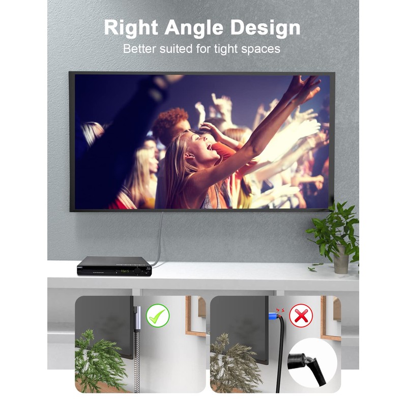 ●Upgrade dual 90 degree toslink optical cable makes the cable better fits for wall-mounted devices, solving the embarrassment of limited spaces between wall and device.