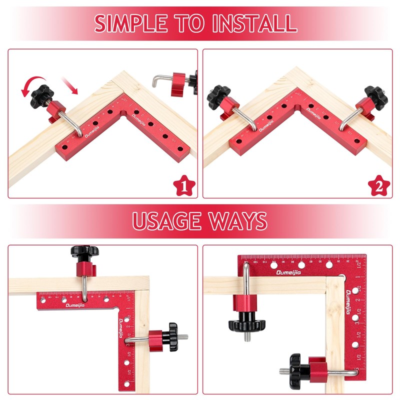 • 【Durable & Corrosion-Resistant】Built to last, our corner clamps for woodworking feature anodized surfaces for enhanced rust and wear resistance. The reinforced L-shaped stainless steel screws and anti-scratch pads provide long-lasting durability, making it a reliable tool for both professionals and DIY enthusiasts