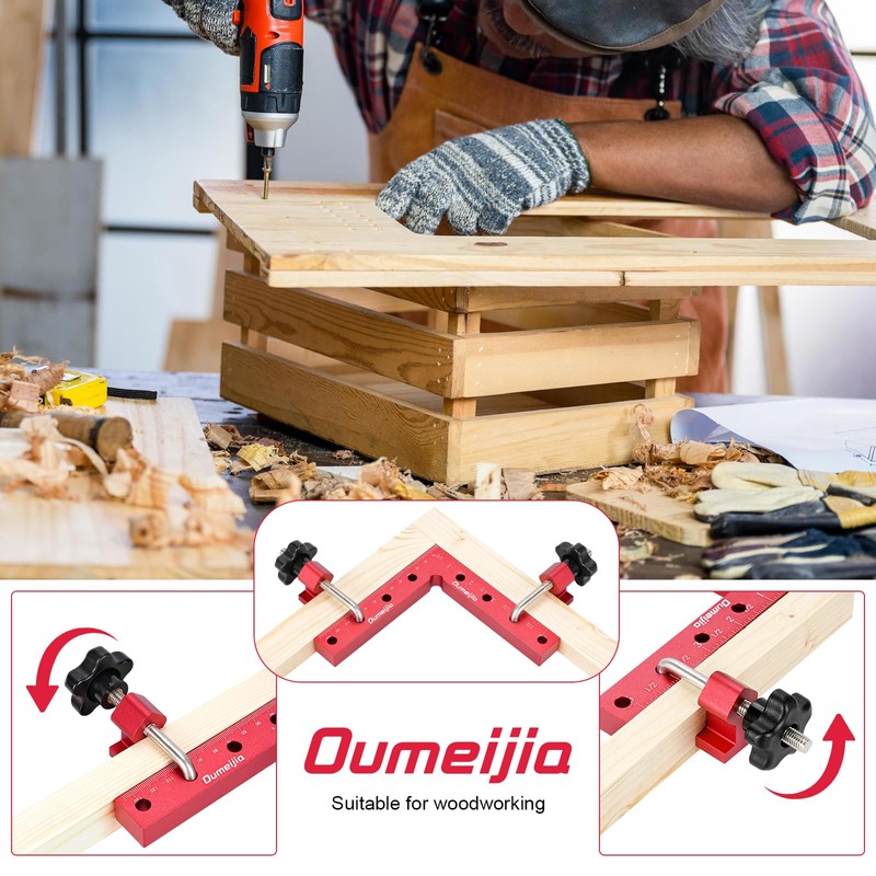 • 【Precision 90° Angle】Achieve perfect 90-degree angles every time with Oumeijia’s 90 degree corner clamp. They help check and position corners at perfect right angles when jointing, gluing or welding wood boards, simplifying your woodworking projects