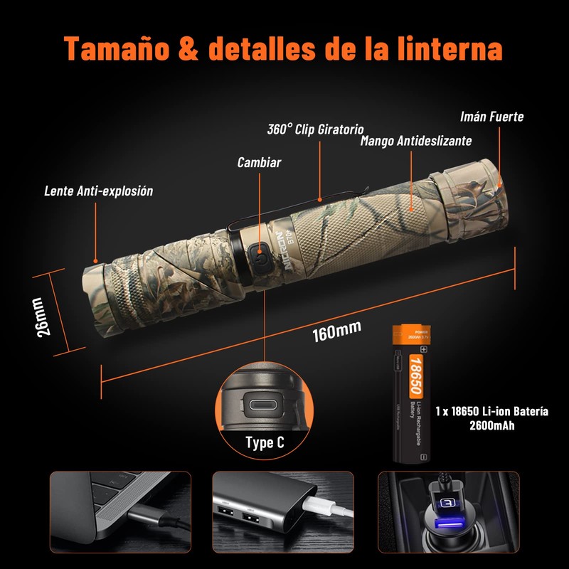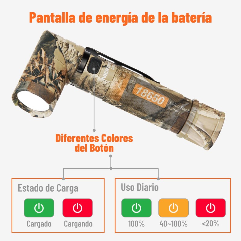 90 ° Twistable linterna con luz blanca, verde, roja, de alto brillo y recargable y resistente al agua, utiliza aleación de aluminio resistente, para viajes, al aire libre, deportes, camping