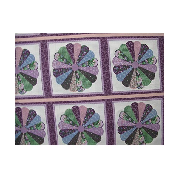 90" Wide Cheater Quilt Top Dresden Plate Purple. Fabric is Sold by The Yard a...