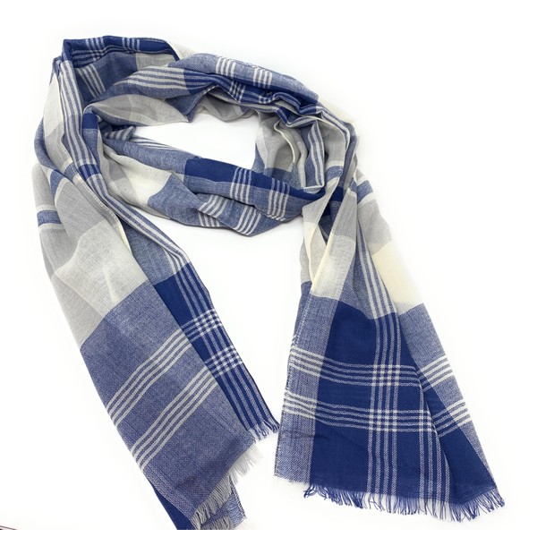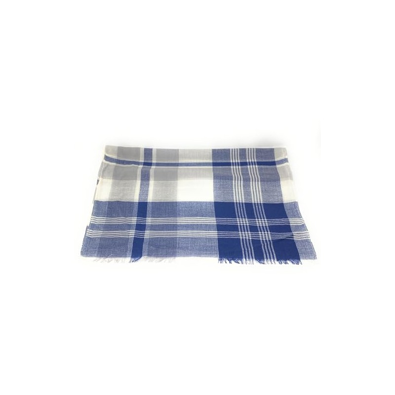 90% Wool 10% Cashmere Lightweight Oversized Scarf - Blue & White Check - V2