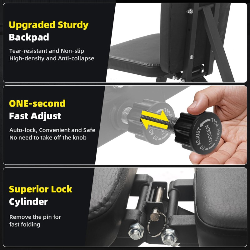 - Versatile Adjustability: Our foldable workout bench press features 8 backrest and 3 seat positions, allowing for easy incline adjustments from 80° to -20° with a self-rebounding spring lock. Perfect for full-body workouts