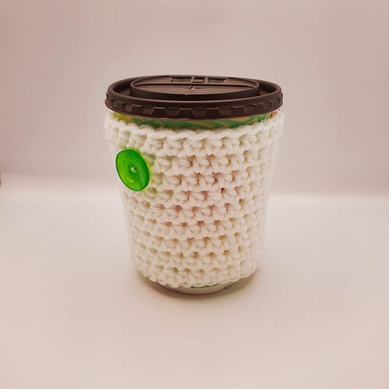 907 Creations By Ca'Trena - Cup Cozy Sleeve with Button, Reusable (White)