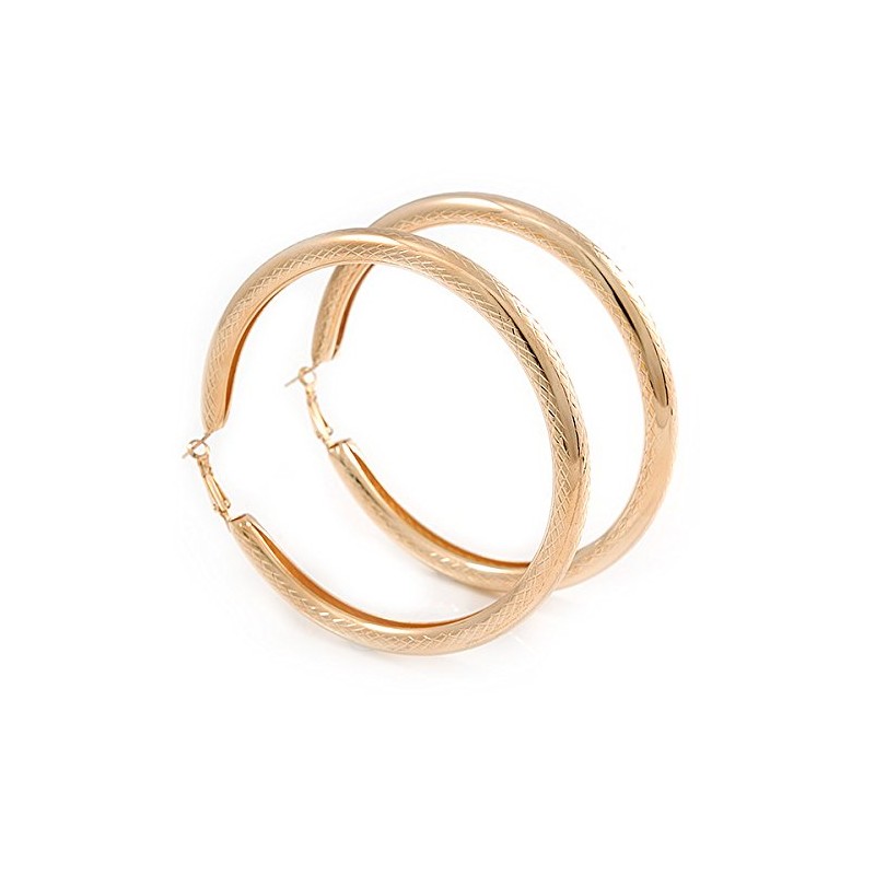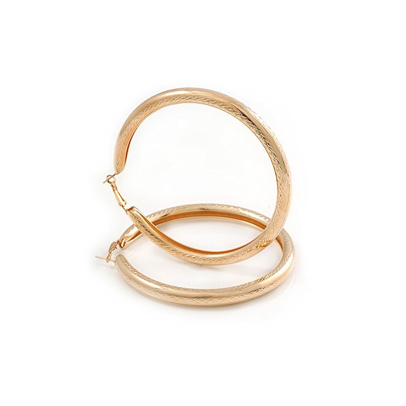 90mm D/Oversized Etched Gold Tone Thick Hoop Earrings