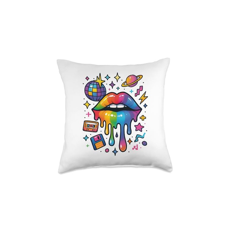 90s Retro Pop Art Rainbow Lips Nostalgia Costume 90s Throw Pillow