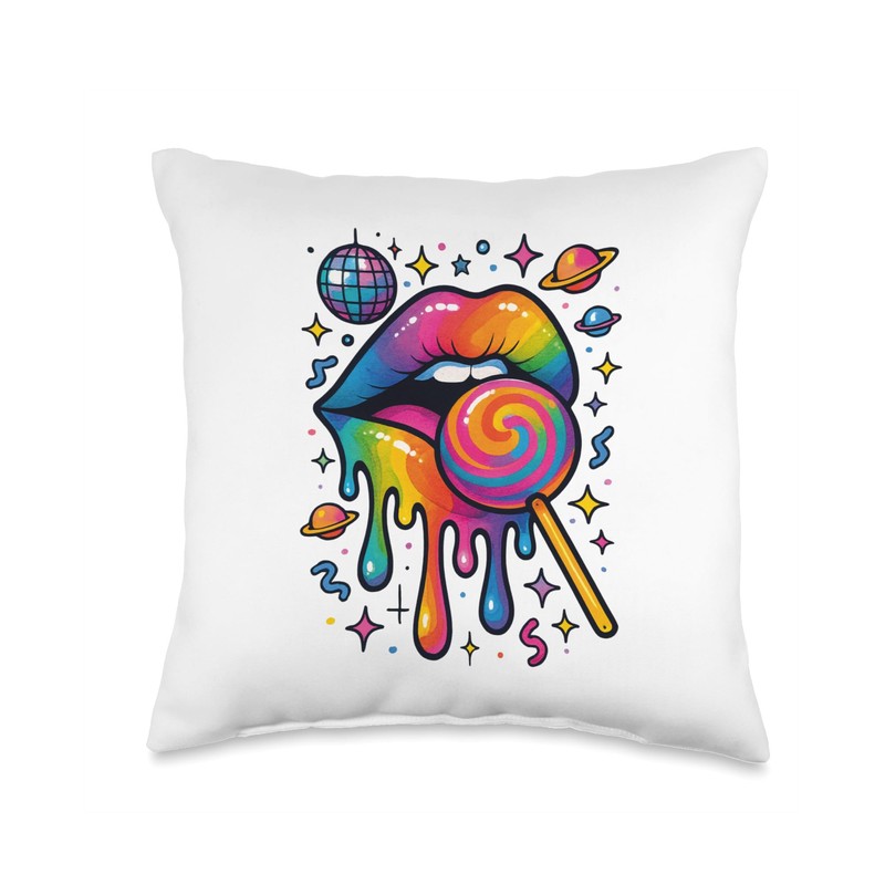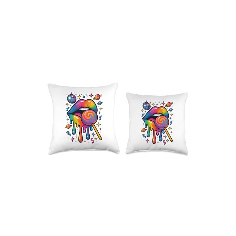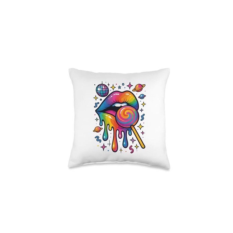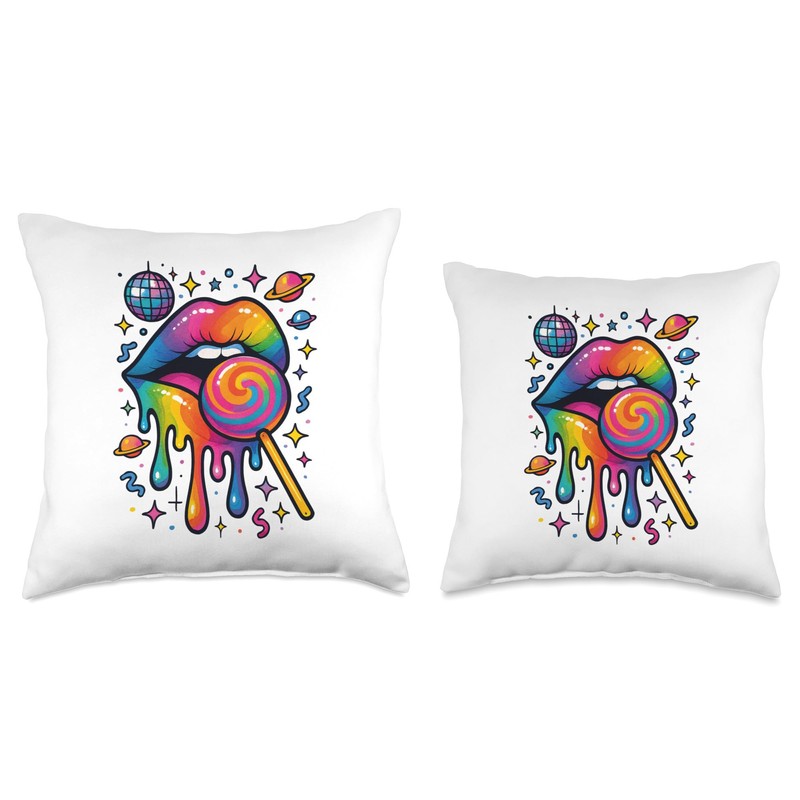 90s Retro Pop Art Rainbow Lips Nostalgia Costume 90s Throw Pillow