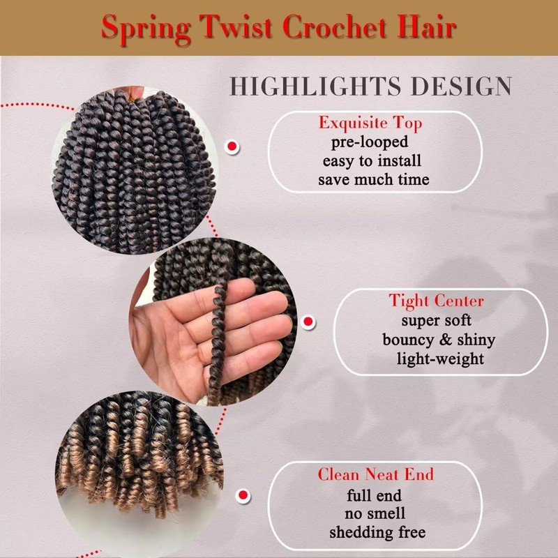 • 【All-Day Comfort】: The Spring Twist Braids cater to the unique needs of black women. Lightweight and gentle on your scalp, they ensure all-day wearability without the hassle of discomfort. They provide fullness and protect your natural hair, making your hair look healthier and better with simple care