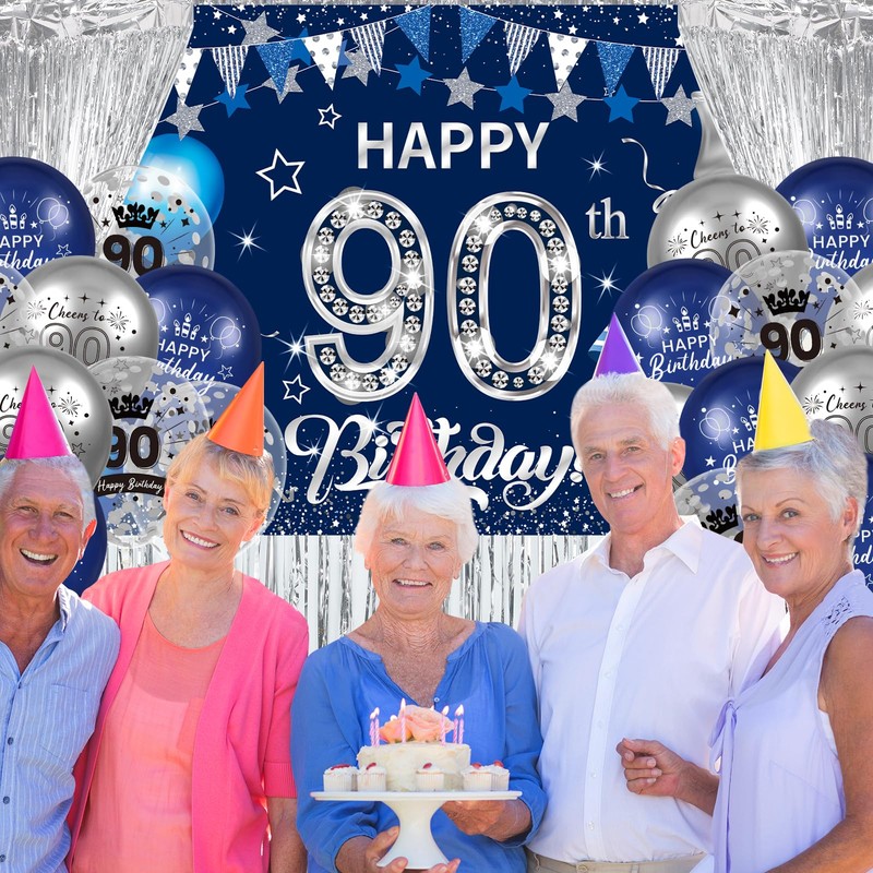 - Save More Time: The 90th birthday decorations can be applied for the 90th birthday, the 90th anniversary. The 90th birthday decorations set get everything you need in one package, no longer to find the individual decor for your party. They can be decorated on the walls, party tables, garden yard trees, your cars, and other places you'd like to decorate. Bringing a wonderful 90th birthday party for men or women