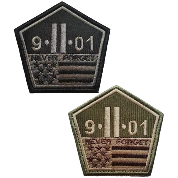 911 Never Forget Memorial 911 Patch Hook and Loop Tactical Morale Applique Fastener Military Embroidered Patch 2Pcs