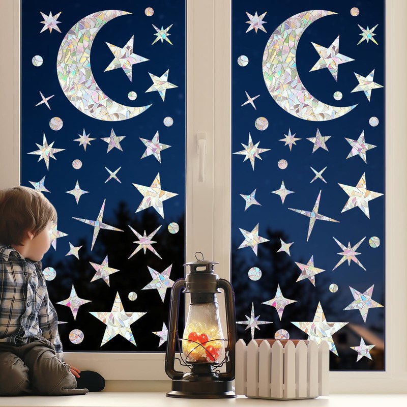 - SUN CATCHER STICKERS: Made of translucent prismatic vinyl, captures sunlight and creates a rainbow effect when the sun is shining directly, brightens up your room