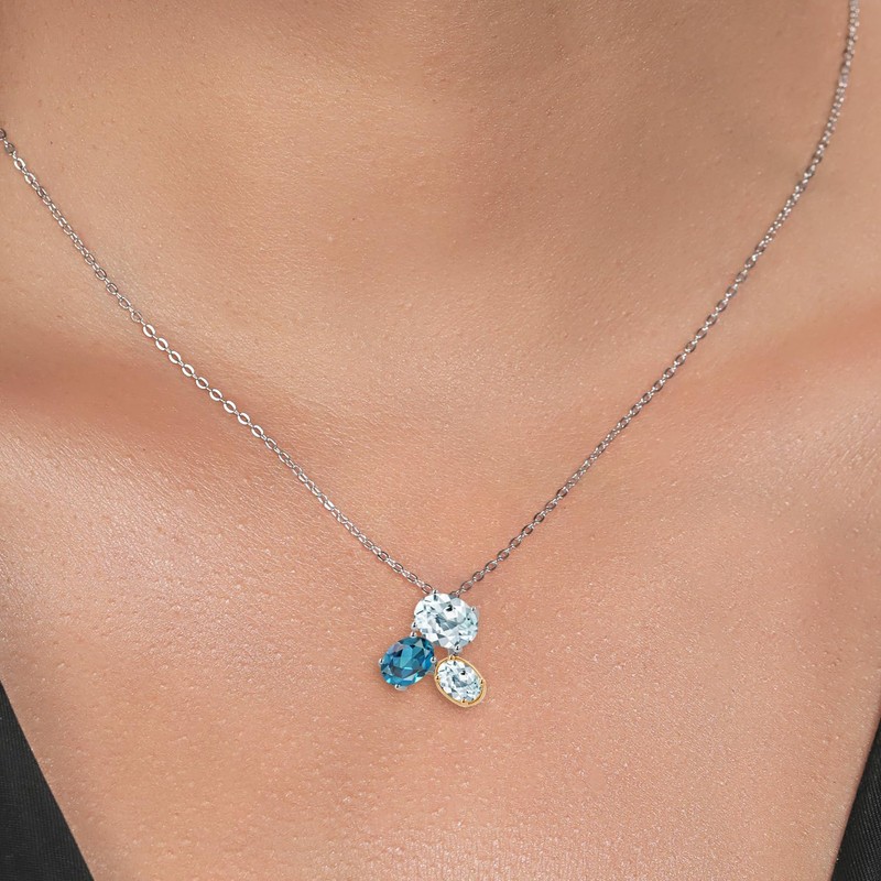 925 Silver and 10K Yellow Gold Sky Blue Aquamarine and London Blue Topaz Pendant Necklace For Women (2.70 Cttw, Oval 8X6MM, 7X5MM and 6X4MM, Gemstone March Birthstone, with 18 Inch Chain)