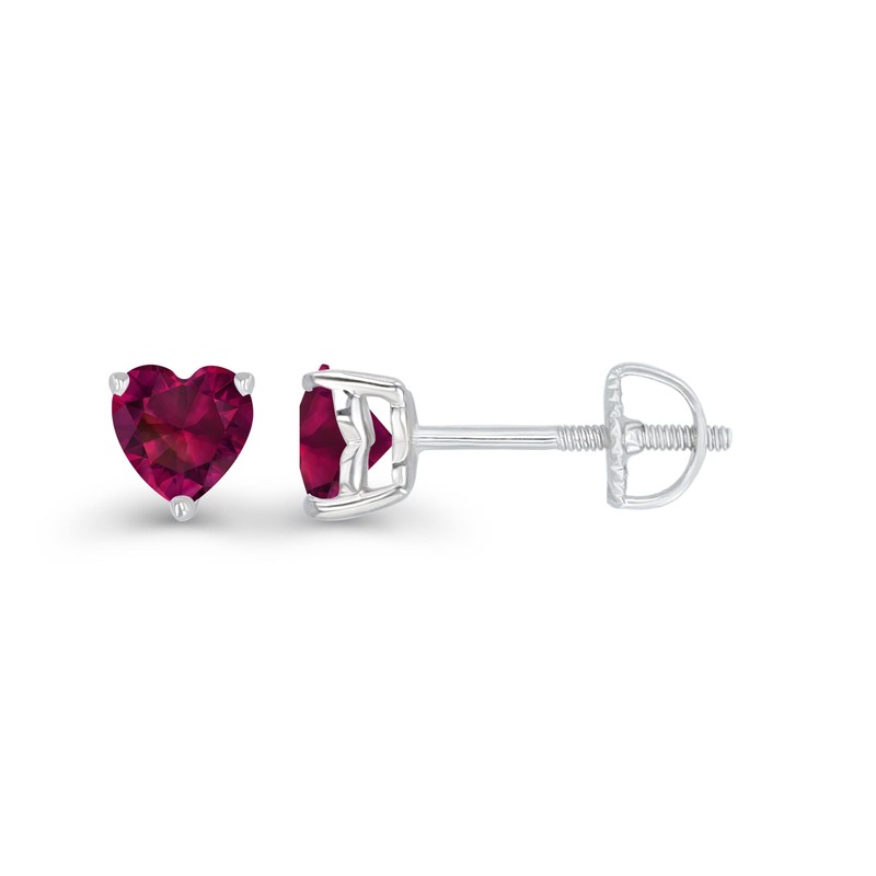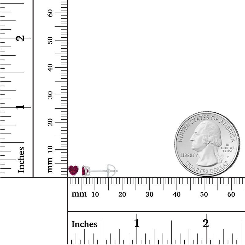 - Created-Ruby: This Sterling Silver Rhodium 4 Heart Shape Created Ruby Screwback Stud Earrings features 2 gemstones with a total carat weight of 1.00 CTW.