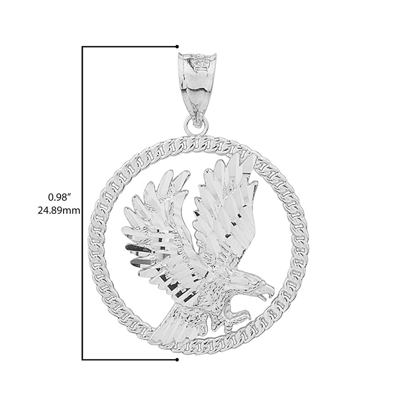 - Make a shining statement with this patriotic .925 sterling silver open frame eagle pendant. At 1” in diameter, this low-profile medallion is the right size to hang from a chain or a bracelet. Buy it on its own, or make it a necklace with our slender matching rolo cable chain in the length of your choice – 16” to 22”. The eagle represents a willingness to fight for freedom. Grab this pendant today and celebrate the spirit of the American dream.