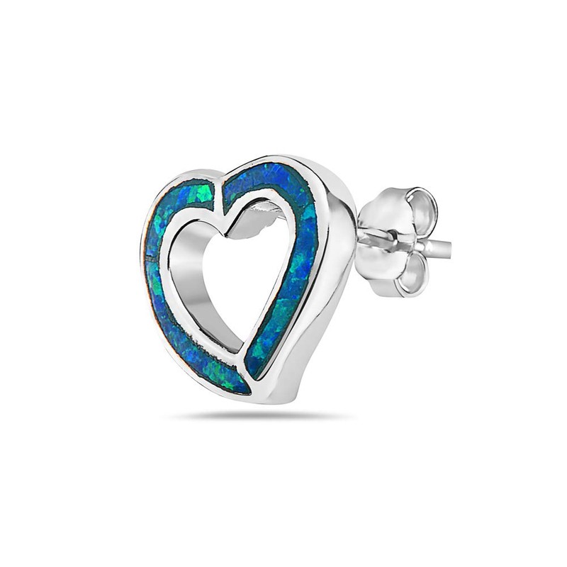 925 Sterling Silver Blue Turquoise-Tone Simulated Opal Open Love Heart Stud E...