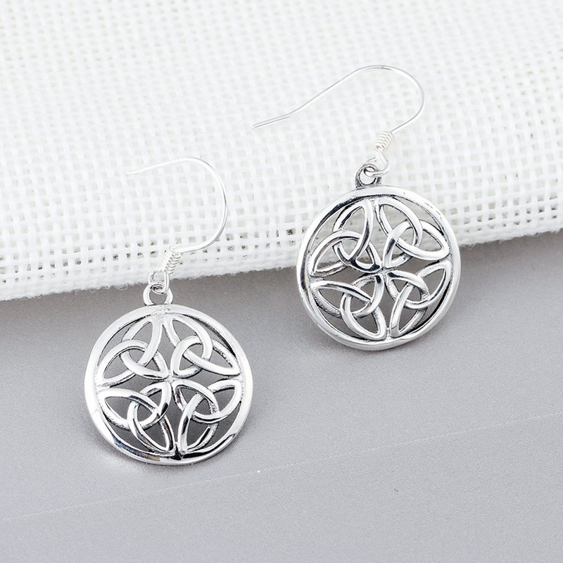 925 Sterling Silver Celtic Knot Round Charm Drop Earrings