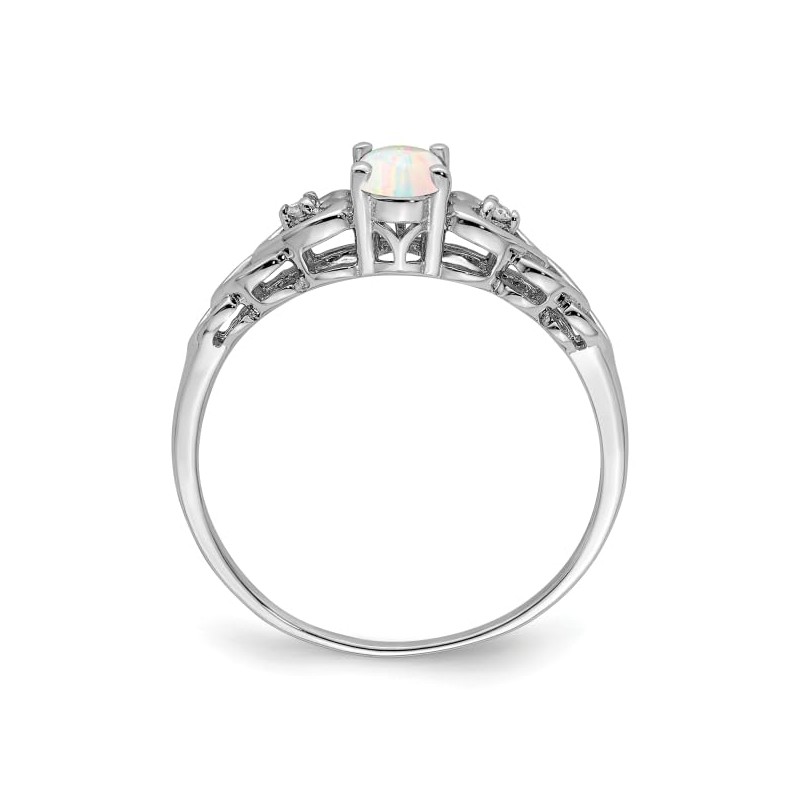 925 Sterling Silver Created Opal Diamond Ring October Birthstone Jewelry Size 5