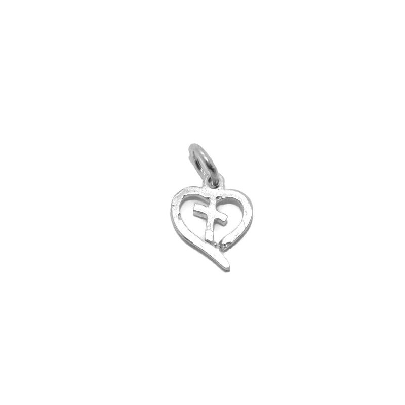 - .925 Sterling Silver Cross in Heart Charm Pendant