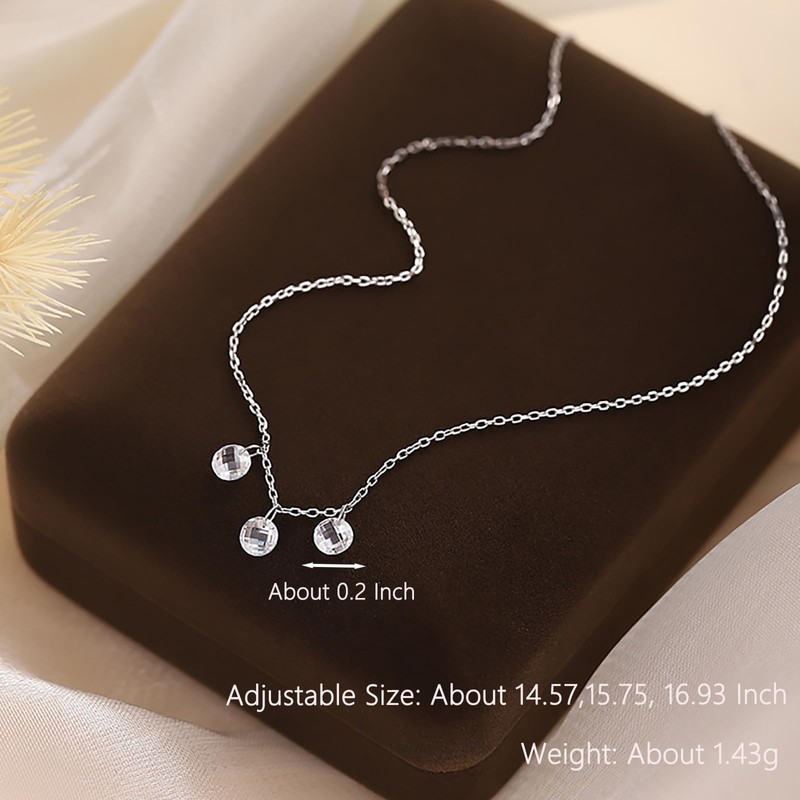 - Shining Spakle Cubic Zirconia Necklace: This necklace decorate with three 5mm cubic zirconia balls, show trendy style. Each stone is precision-cut to maximize light reflection, show sparkling shine
