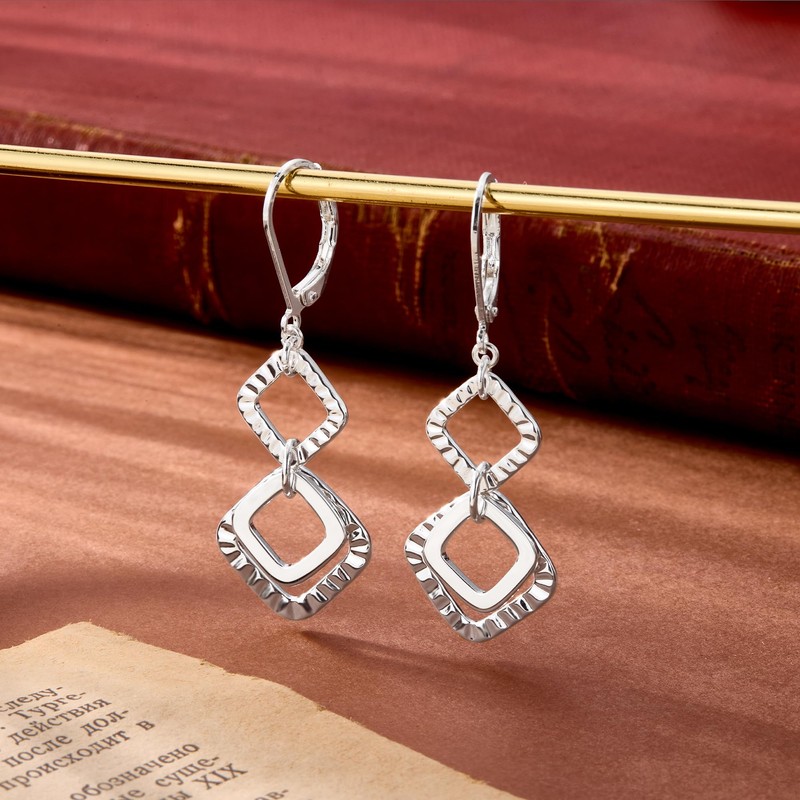 - Geometric Elegance with Handcrafted Texture: Featuring three rhombus shapes with artisanal hammered detailing, these silver dangle earrings offer a perfect blend of modern geometry and organic texture for a statement-making look. These unique design dangling modern earrings complement both casual jeans and little black dresses.